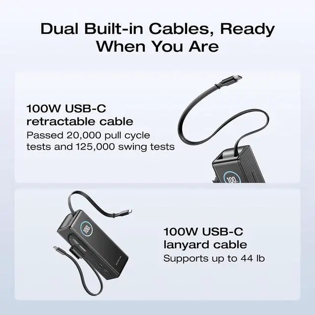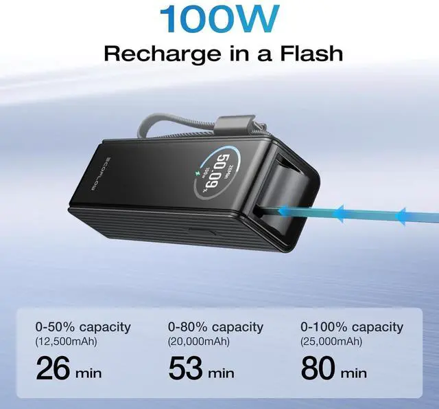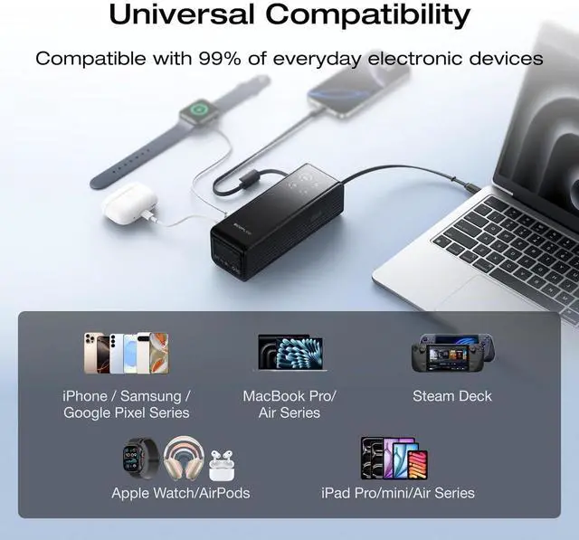 25, 000mAh Capacity, Air-Travel-Friendly: Provides ample power support for your laptops, meeting remote work needs for 1-2 days. Can charge your phone 4-5 times, eliminating battery anxiety.