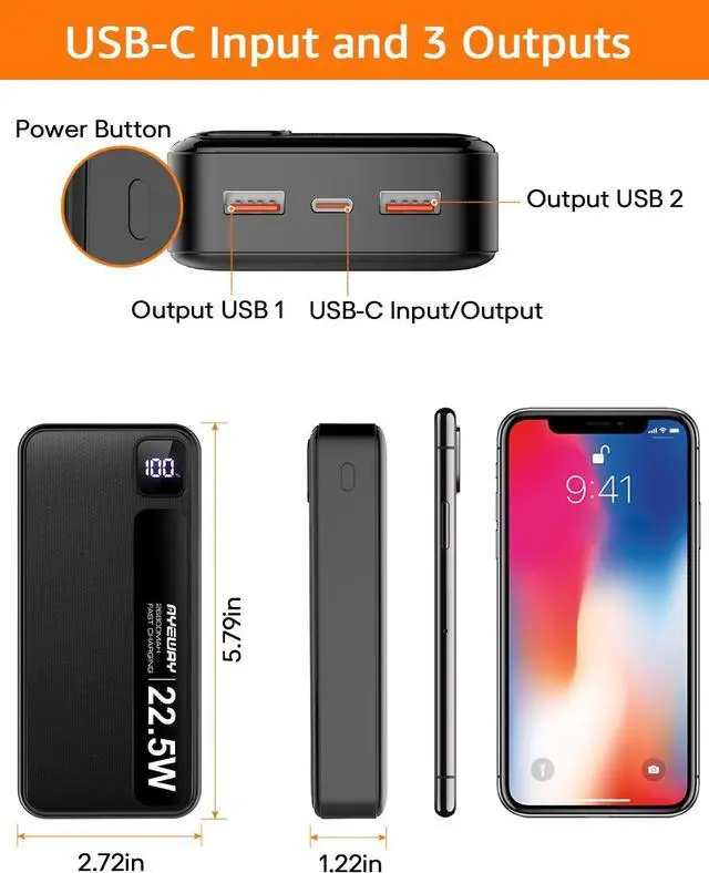 LED Digital Display: With the LED digital display, it will be more convenient to know the exactly percentage of remaining power than a blinking dot display. So that, you will know exactly when to recharge it. To turn on the LED Screen, just need to connect your devices to the item or single click the power button.