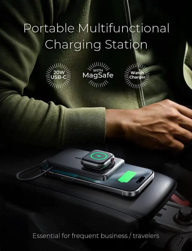 Fast ChargingWireless charging 15W Max Output, support iPhone magsafe 7.5W fast charging, iWatch 2.5W fast charging and other devices support 15W charging; Built-in cable support 20W fast charging. USB C port supports 20W fast charging; Power supply to support 18W input to achieve rapid replenishment of electricity.