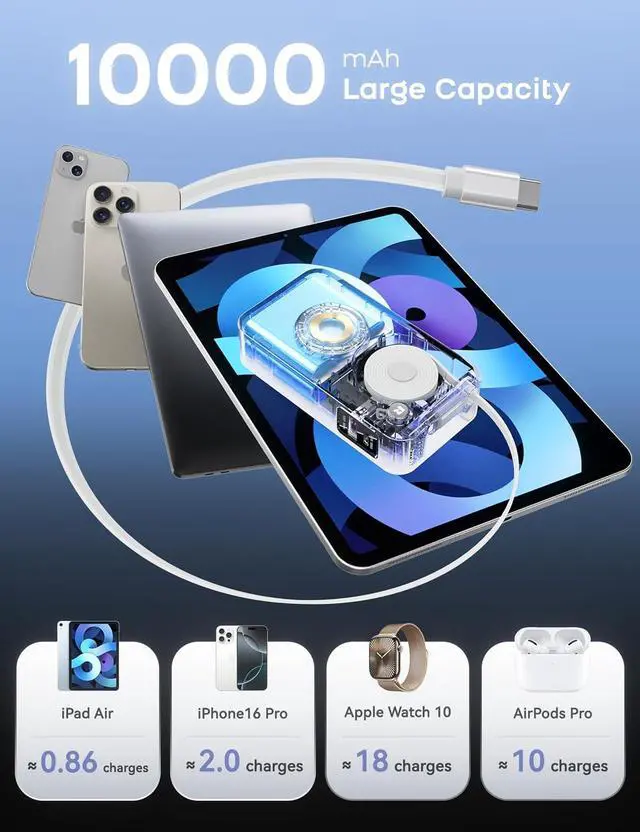 Safe & Reliable: Backed by certifications like FCC, UL, and IEC, and equipped with advanced protections against short circuits, overcharging, and overheating. The retractable cables are tested for over 20, 000 pulls and bendsbuilt for durability and safety.