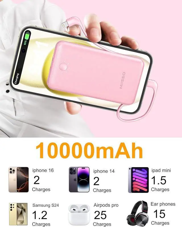 High Capacity: Contains 10000mAh of power. Enough to provide over 2 entire replacement charge for iPhone 16, for iPhone 15, for iPhone 14 and Samsung Galaxy S24. 10000mAh can meet your daily electricity demand. It will be your most important partner daily. And when you are traveling or on a business trip that will be helpful