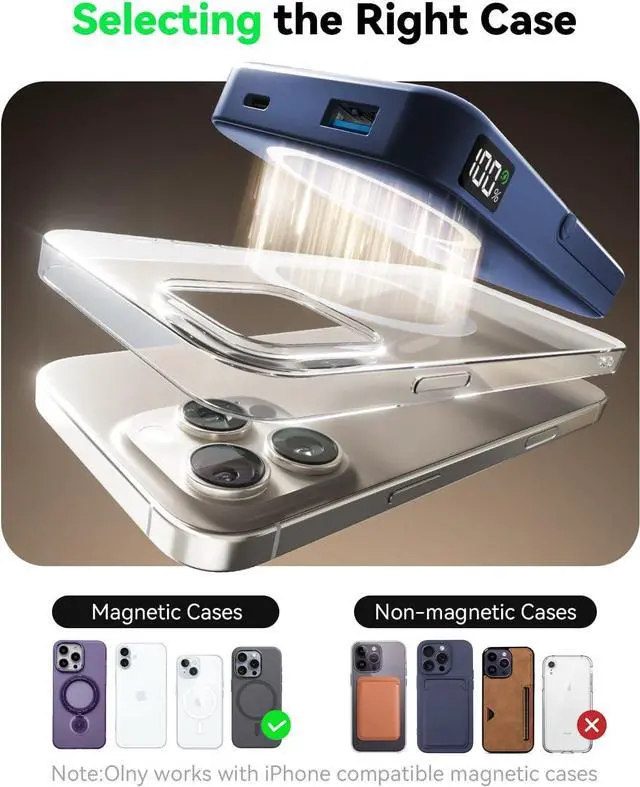 LED Display and Smart ProtectionThe magnetic portable charger sleek LED display provides real-time battery percentage, so youll never run out of power unexpectedly. Built-in multi-layer safety protection system guards against overcharge, over-discharge, short circuit, and overheating. Certified with FCC/CE/ROHS, ensuring safe and reliable charging anytime.