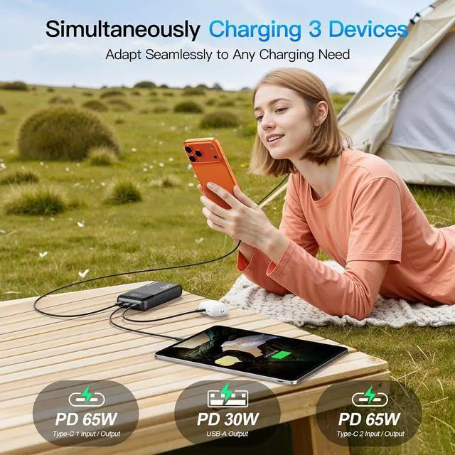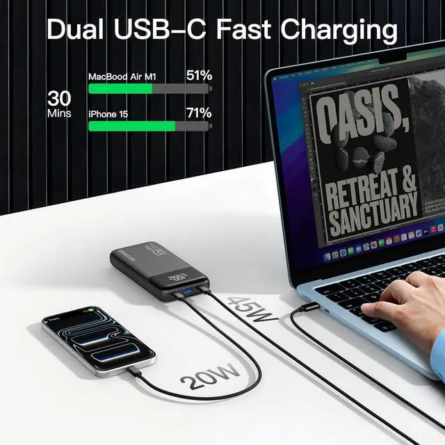 Dual-Mode Charging for All Your Gadgets Featuring an innovative dual-mode system, this power bank for laptop and small devices is engineered for universal compatibility. The default high-power mode is perfect for your laptop and tablets, while a simple double-click switches to a low-power mode. This trickle-charging feature is designed to safely charge smaller devices like AirPods and smartwatches, making it a truly versatile portable charger.