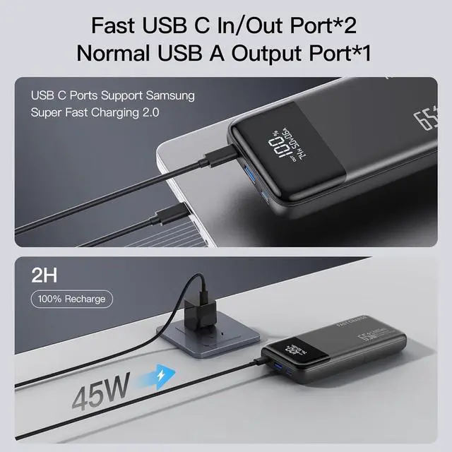 Intelligent LED Digital Display Stay in complete control with the smart LED display on this advanced power bank. It provides a detailed, real-time overview of your charging status, instantly showing whether it's in "input" or "output" mode, the remaining time, and the precise voltage and current. This level of detail allows you to manage your portable power with confidence and precision.