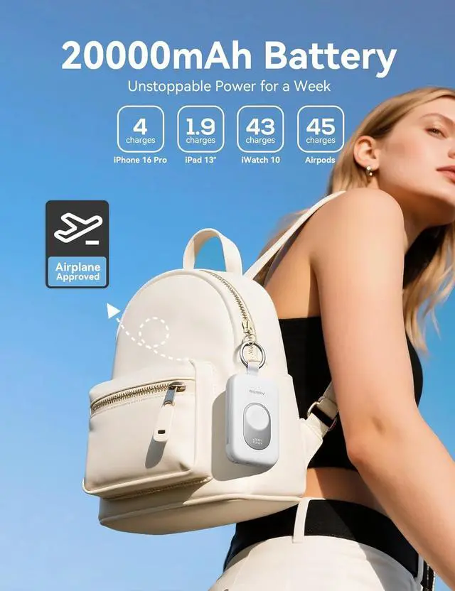 Compact & Travel-Ready: Smaller and lighter than you'd expect, this power bank for iPhone is about the weight of two iPhone 15 Pro ( 0.83 lb). It also comes with a built-in keychain, perfect for hanging on your bag or holding securely while charging. Additionally, this portable apple watch charger is airplane-approved, a real must have travel essentials for you!