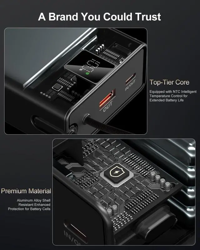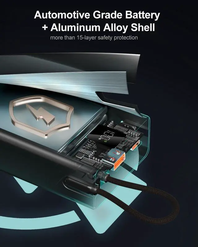 Automotive-Grade Safety & Durability: Automotive-Grade Battery certified by UL/FCC/CE for explosion resistance and 1, 000+ charge cycles; Aerospace Aluminum Shell, shockproof, heat-dissipating, and drop-tested from 6ft; 15 small protections, over-charge/current/discharge, short-circuit, temperature control, voltage regulation and ect; Safest power bank on protects your devices and peace of mind;