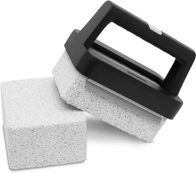 Its everything you need to give your griddle a deep clean. Theres a detail scraper to remove large chunks of food, scour pads to scrub off stuck on bits, cleaning stones to get rid of stubborn stains. Easy grip handles clip onto the scour pad and cleaning stone for comfortable, efficient cleaning.