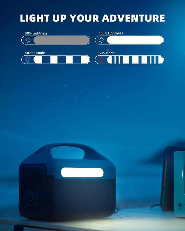 Small Generator with Emergency LED Light Power Station is built with a 4-level brightness LED flashlight, which could emit 4 lighting modes (steady light and SOS mode) to meet your different needs. Press the LED flashlight switch to change the brightness and SOS mode. When you go out camping or experience power outages, this power supply can always help you out
