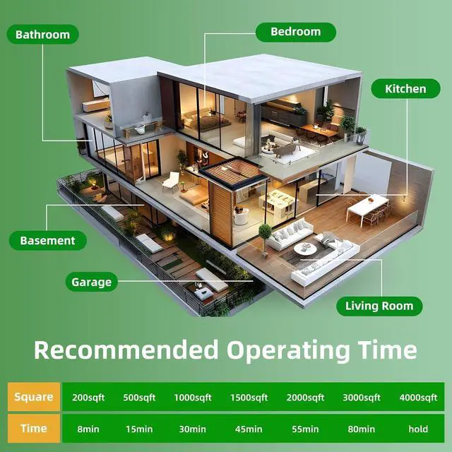 Easy to Use \ Safe for Unoccupied UseSimply set the timer knob (up to 120 minutes) according to your space size. The ozone eliminator will shut off automatically when finished. Ensure all people and pets are removed before use, ventilate for at least 30 minutes after use before reentering