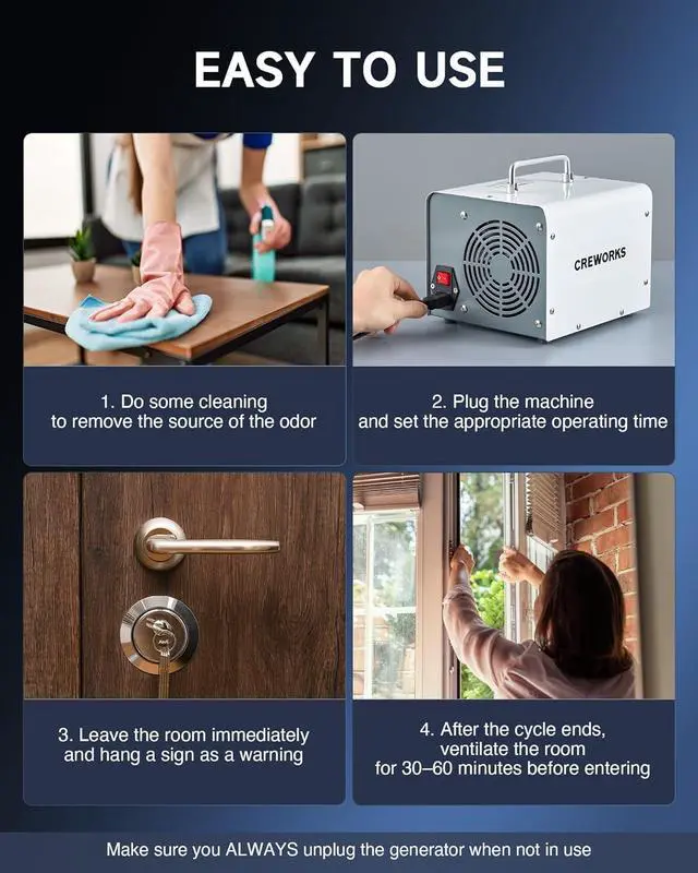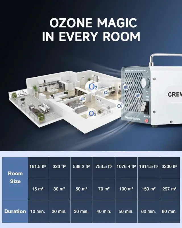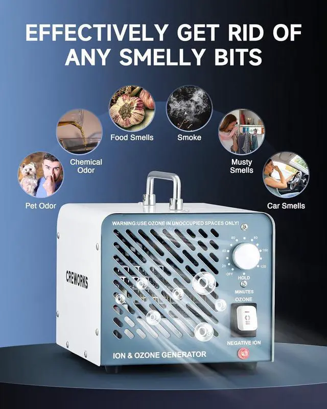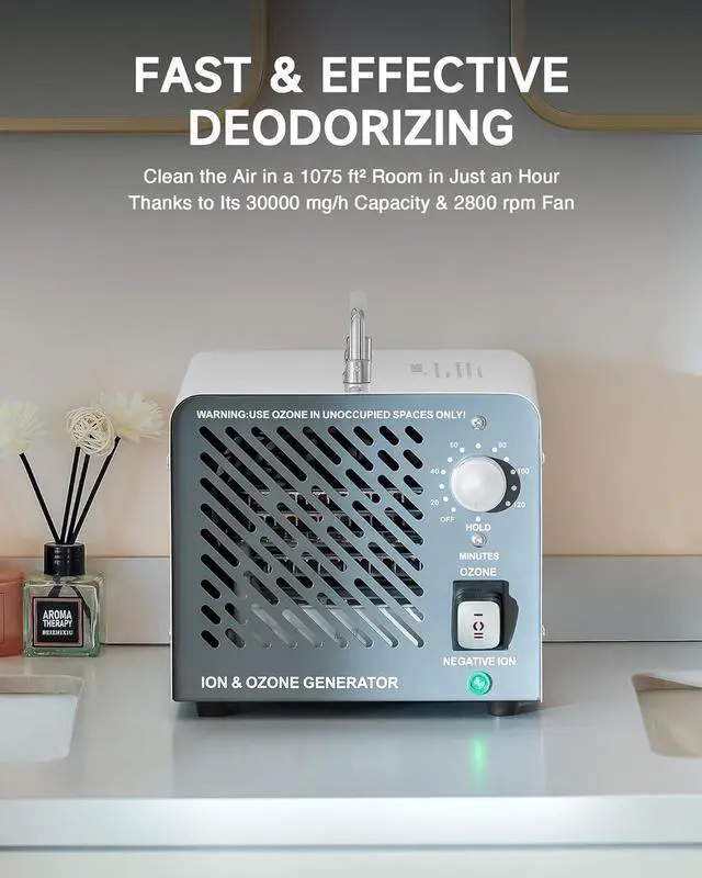 Compact & Portable Design: Weighing just 6.4 pounds and coming with a built-in comfy handle, this ozone air purifier is effortlessly portable, making it an ideal choice for home, commercial, or even industrial use