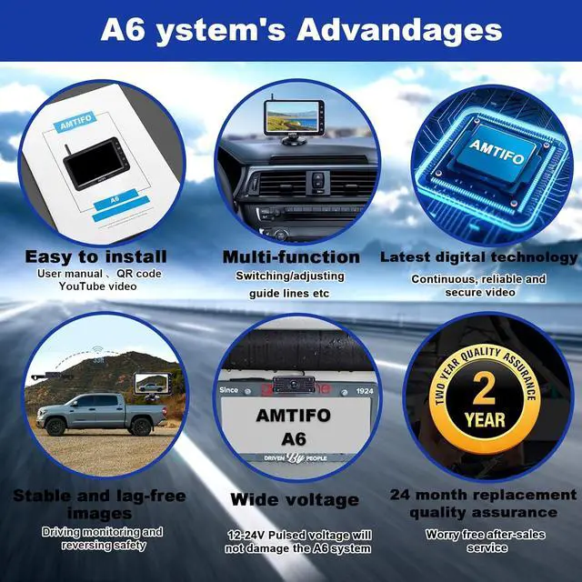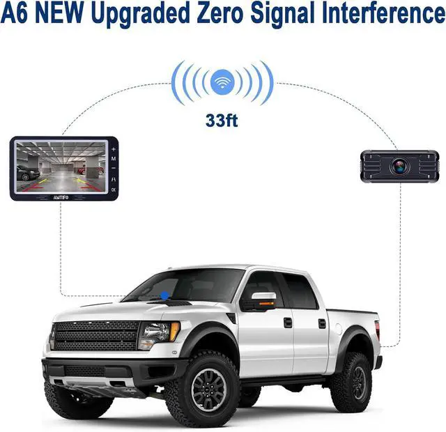 Multifunctional and versatile: A6 back up camera for truck supports image flip, and adjustment of brightness, contrast, and language settings, making it user-friendly for experienced drivers and beginners alike. This backup camera wireless set assists in trailer connections and signal transmission range of the trailer rear-view camera extends up to 33 feet, making it suitable for trucks, SUVs, car, pickups, small campers, etc.