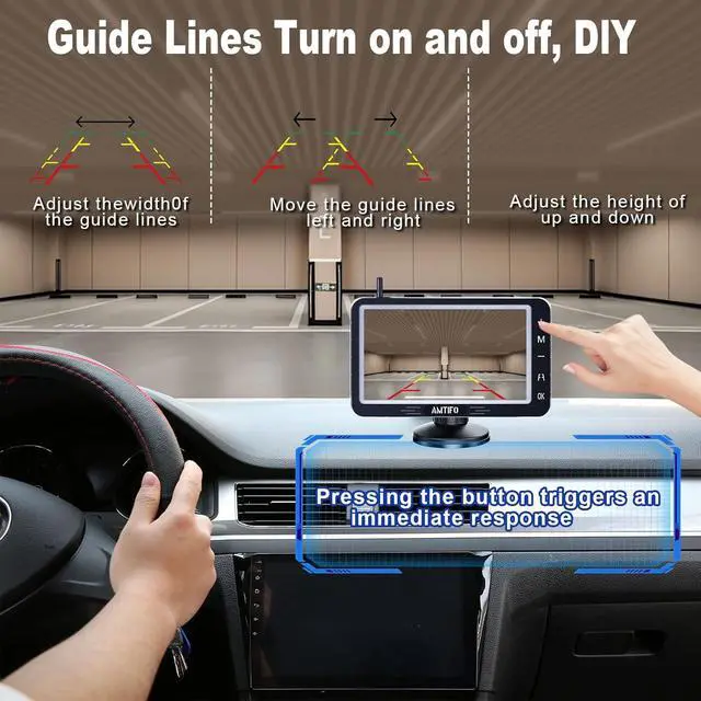 Advanced Materials: The 5-inch IPS display offers a wide viewing angle, ensuring image consistency from various directions. The touch buttons replace traditional keys for immediate responsiveness. Wireless truck backup camera latest rubber material used in the mounting bracket allows easy and secure attachment to the dashboard or windshield. Bracket enables flexible adjustment of the display orientation, providing great stability and preventing vibration or shaking, ensuring the screen's safety.