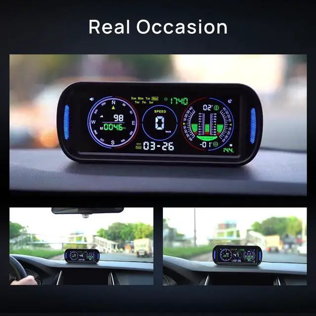 Pitch & Roll Angle Monitoring: Get real-time readings of your vehicle's incline and tilt (-40° to +40°), essential for safe off-roading, hauling, and parking