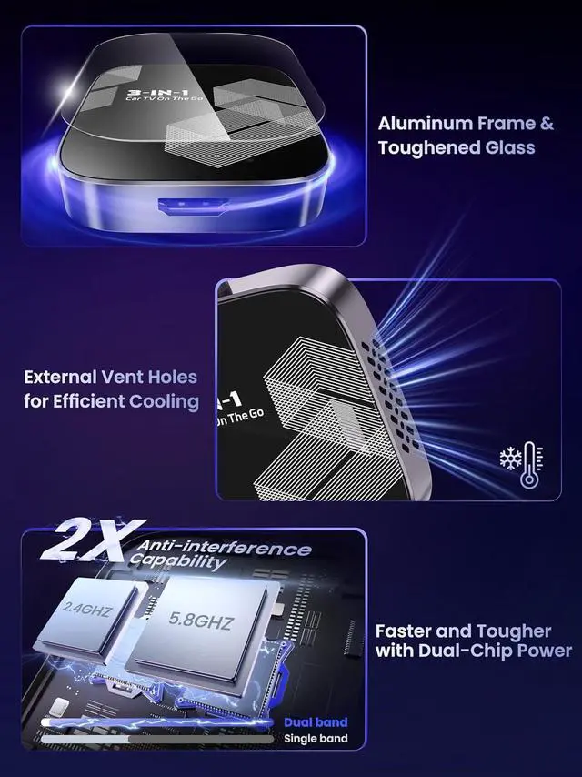 [Important Compatibility Notes] 1. Compatible with factory-wired ap CarPlay vehicles from model year 2016 and newer. (Not compatible with BMW and Tesla models. ) 2. Supports iPhone 6 or later with iOS 10 and above for Wireless CarPlay. 3. Compatible with TV sticks, game consoles, set-top boxes, screen throwers, DVDs, and more. 4. Your streaming device must be powered and require a stable mobile hotspot or Wi-Fi connection to access the internet. 5. Please confirm compatibility before purchase to ensure optimal performance.