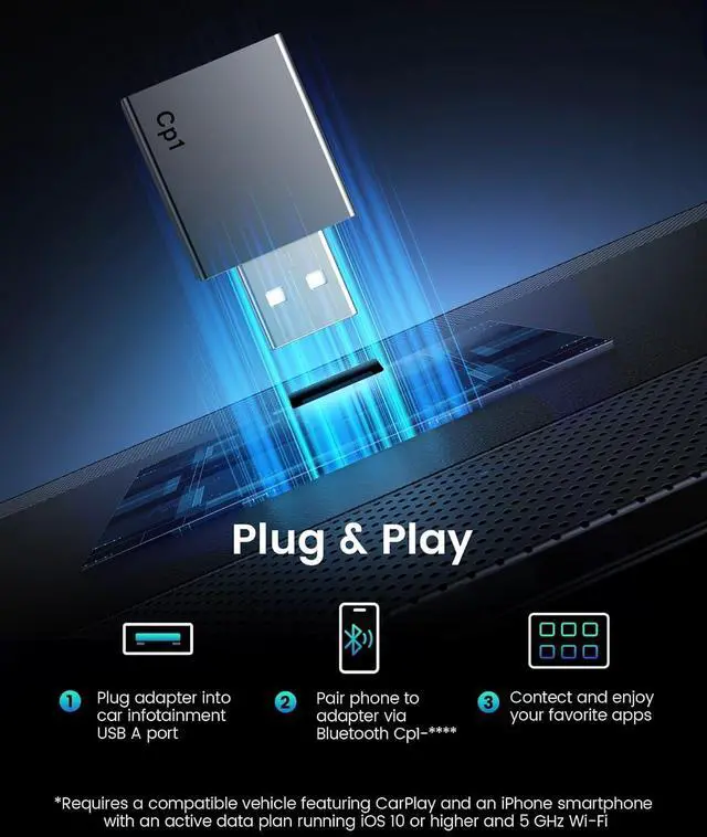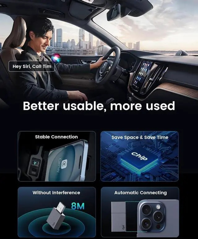 Lightweight: 50% smaller than competitors, our mini usb carplay wireless adapter features a flame-retardant AEC-certified shell and a USB port tested for 10, 000+ insertions. Built to withstand extreme car temperatures and vibrations while keeping your dashboard clutter-free