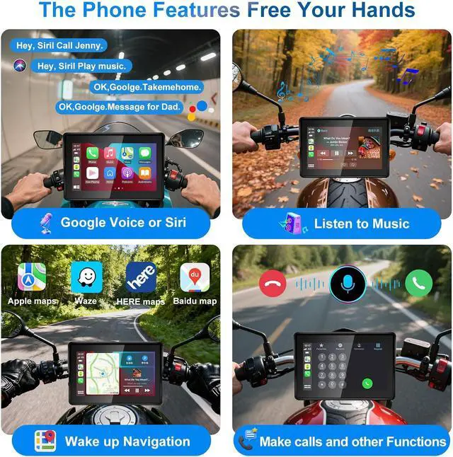 Designed for Motorcycle RidersSpecifically tailored for bikers with a motorcycle-friendly screen size, secure clamp, vibration-proof build, wide viewing angle, and compact footprint that fits most handlebars.
