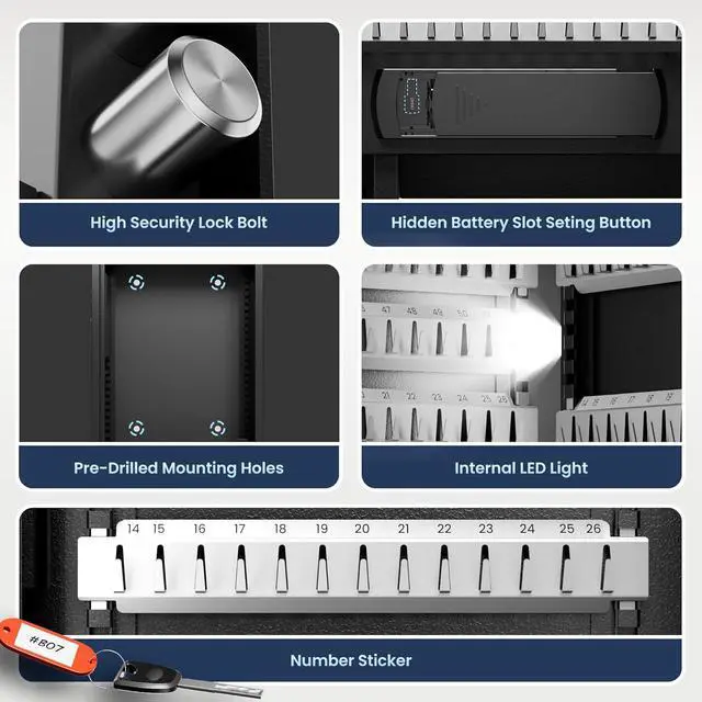 - Interior LED lights automatically illuminate when unlocked, providing extra visibility to easily find the key needed in this electronic key lock box, eliminating worries in low-light environments
