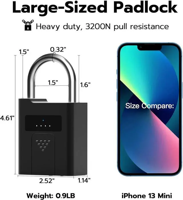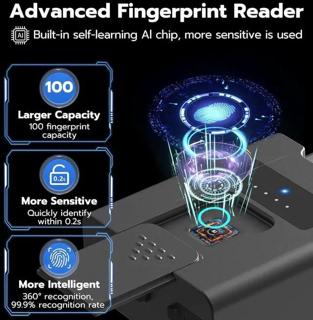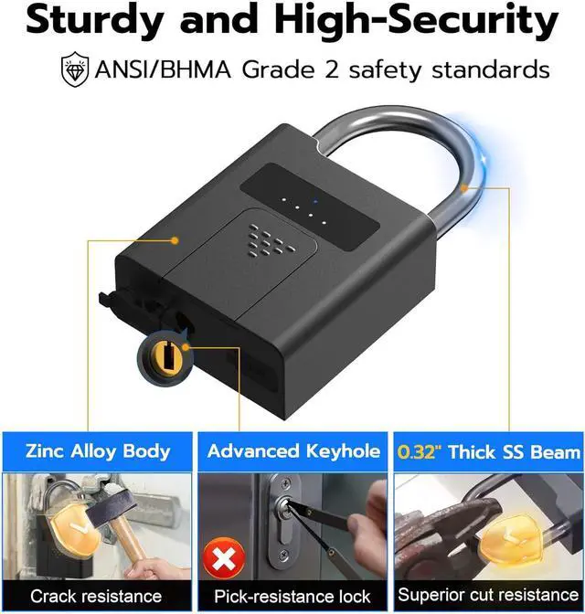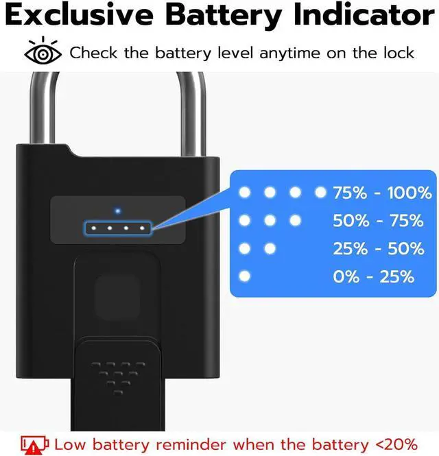 Ultra Long Battery Life: This fingerprint lock built-in ultra-large capacity 500mAh rechargeable li-ion battery, which can last standby for 24 months and be unlocked about 8000 times after fully charged, and Type-C fast recharging in 2 hrs.