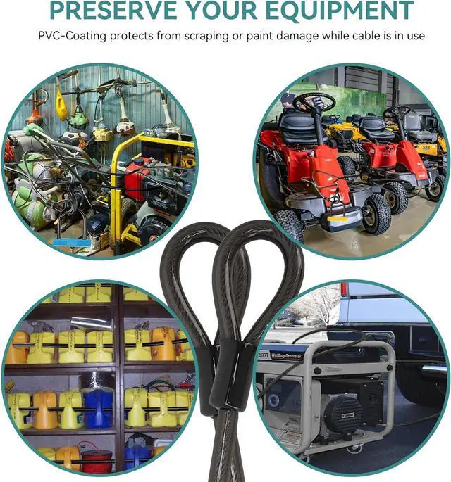 5. Maintain Your Equipment Each cable is formed with a PVC-coated galvanized steel cable which makes it more durable. The PVC coating helps to prevent the safe security cable from rusting and protects your equipment from scratches or damage to the paintwork.