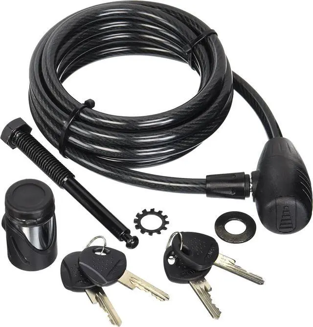 1/2-13 TPI locking threaded hitch pin with keyed alike cable. Can be used on all the following models: HR1000, HR1000R, HR200, HR2500, HR6500, HR8500, HR1460E, HR9200. Can also be used on most other hitch racks using threaded hitch pins.