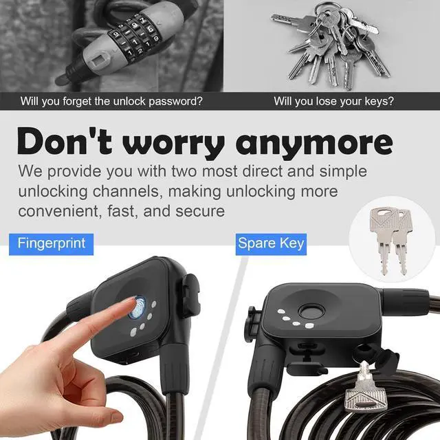 Long Battery Life: This fingerprint electric bike lock is equipped with an upgraded version 300 mAh Large capacity rechargeablelithium battery, capable of standby for 8 months, unlocks approximately6000 times after fully charged. Type-C It can be quickly charged withinI hour. Can be used ine scooter lock electric scooter lock scooter locke bike lock ebike locks heavy duty electric scooter locks electric bikelock lock for electric scooter lock for scooter electric escooter lockelectric bike locks