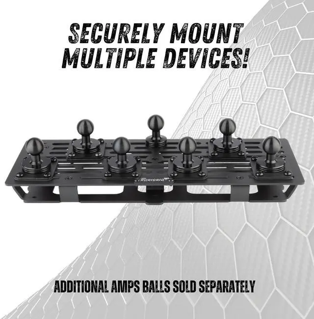 RubiGrid is a fully modular dash mounting platform made from laser-cut metal that uses AMPS mounting balls. This means that you can mount multiple devices and easily change the configuration and location of your mounting balls to dial in your perfect command center.