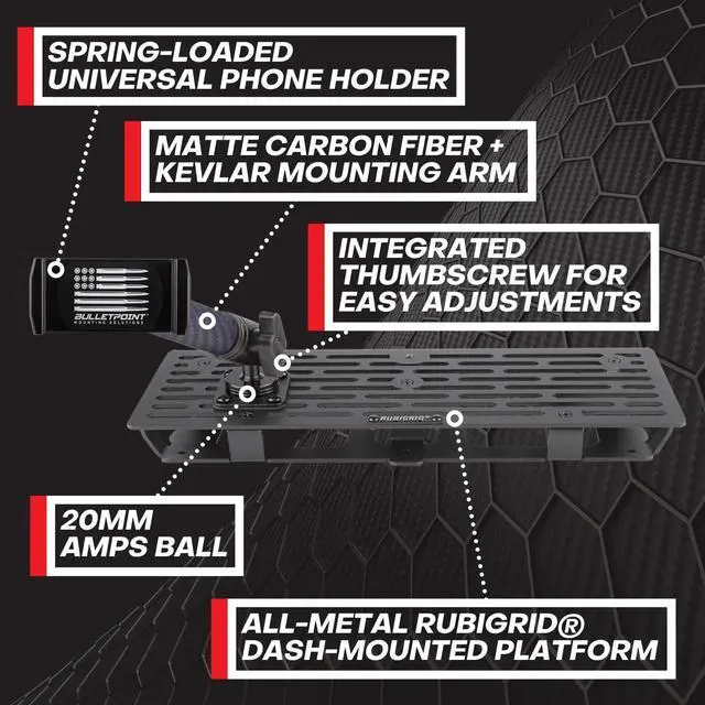 Whether you need to mount phones, tablets, action cameras, radios, GPS systems or TPMS systems, our RubiGrid Super Duty Dash Mount can handle it.