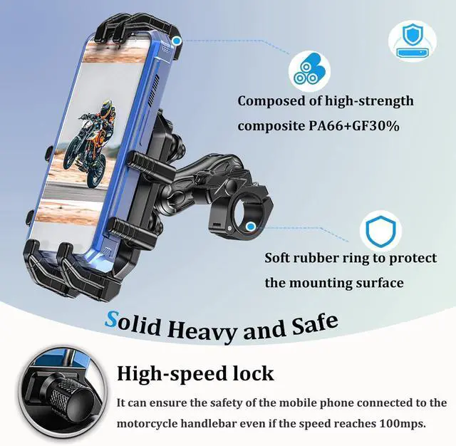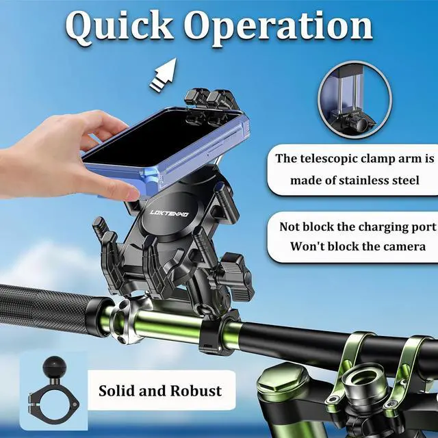 Quick Operation The telescopic clamp arm is made of stainless steel, and the clamp width and height can be adjusted with one hand. The width and height of the scooter phone holder is adjusted for the first time to fit. In the future, you can truly enjoy one-hand quick installation and release.
