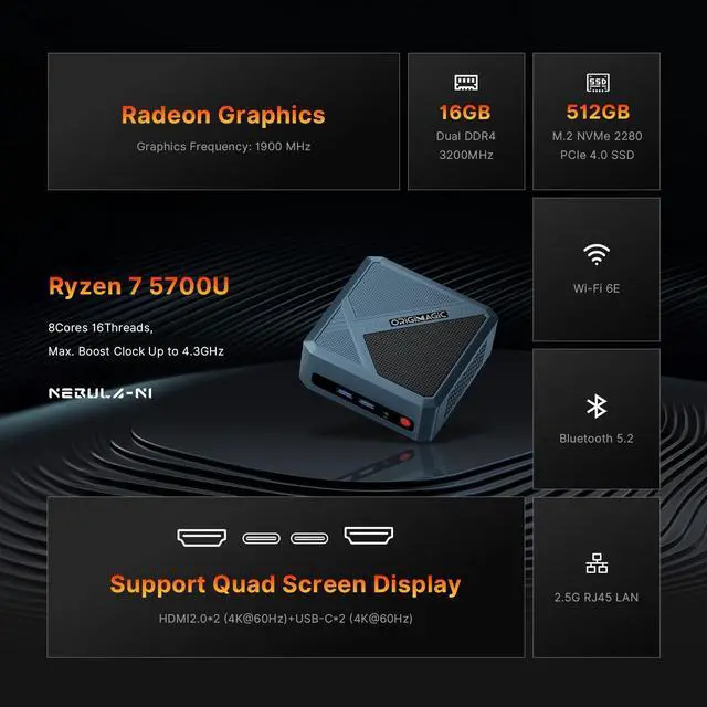 VERSATILE PORTS: N1 Lite micro computer is packed with connectivity options, including two full-function USB-C ports, two USB 3.2 Gen2 Type-A ports (10Gbps), two USB 2.0 Type-A ports, and a 2.5G bE LAN port, audio outputs (HDMI x2, 3.5 mm combo jack) for versatile peripheral connections