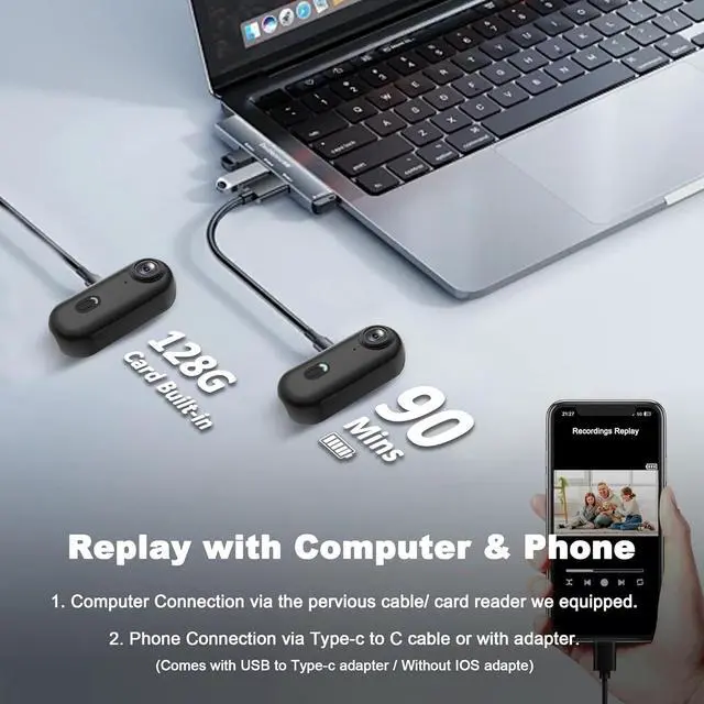 Versatility at Your Fingertips - Designed for portability and convenience, this mini camera comes with a 360° swivel detachable clip and a magnetic lanyard, allowing easy attachment to clothing or bags for hands-free use. Its powerful magnet and stable stand design make it ideal for mounting on metal surfaces or flat areas, providing flexibility in capturing different angles.