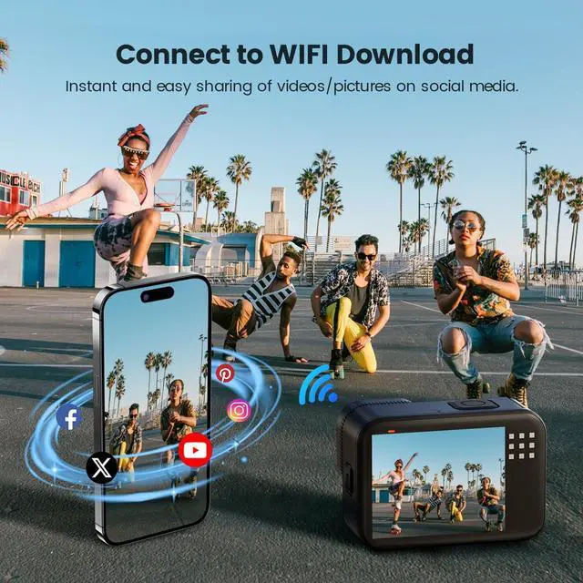 Instant Sharing Made Easy: Enjoy both landscape ( 16:9 ) and portrait ( 9:16 ) shooting modes, designed for TikTok and other social platforms. With built-in 2.4GH z Wi-Fi, its easy to share your exciting adventures by simply downloading the Viipulse app on your iOS or Android device, connecting the camera via WiFi, and transferring your videos and photos to your phone in minutes. (This camera does not support live streaming)
