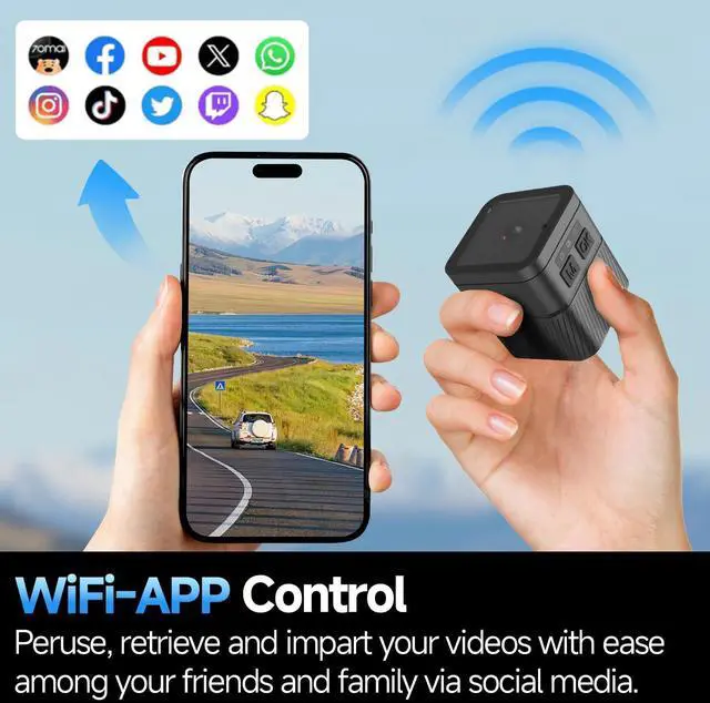 Easy Operation: This mini action camera has built-in Wi-Fijust download our dedicated App on your phone/tablet, connect to the camera, and take full control. Through the App, you can easily adjust settings, start/stop recording, and manage footage. Its convenient to operate even when mounted on a backpack, tripod, or for hands-free use during hiking, parties, or daily vlogging. Wi-Fi ensures stable connection for smooth control.