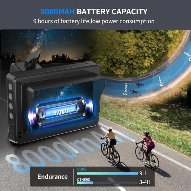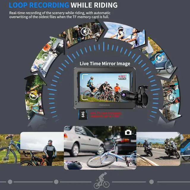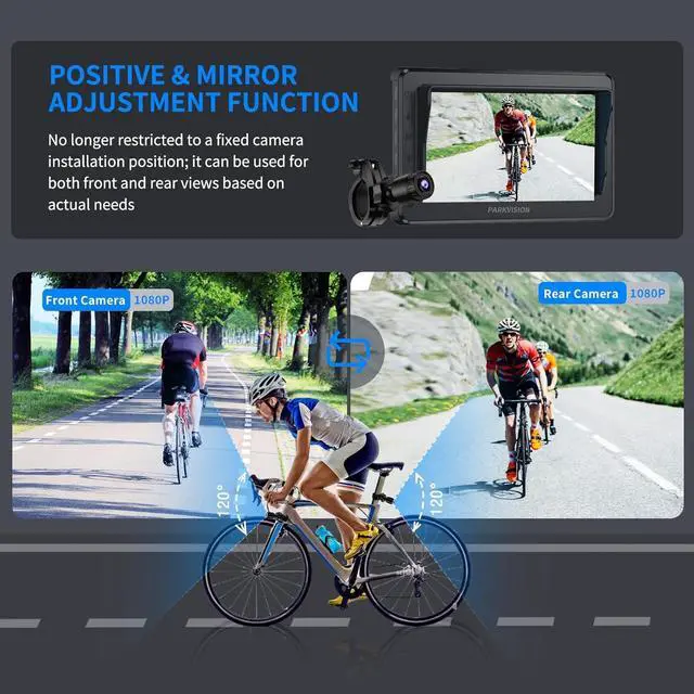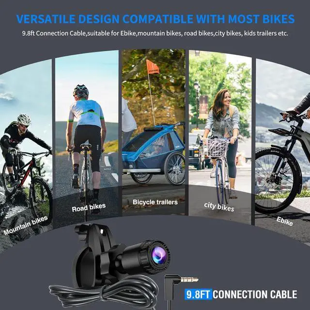 3-Min Tool-Free Installation: ebike camera system Fits 17-38mm seatposts & 18-42mm handlebars. 360° rotatable ball joint allows optimal angle adjustment. Built-in patented sunshade eliminates screen glare and fogging issues common in traditional bike mirrors