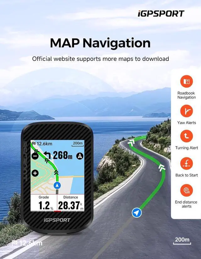 MAP NavigationThe cycle computer supports global offline map download, can save multiple routes, supports route preview and turn prompts, which makes you can ride around the world without getting lost.