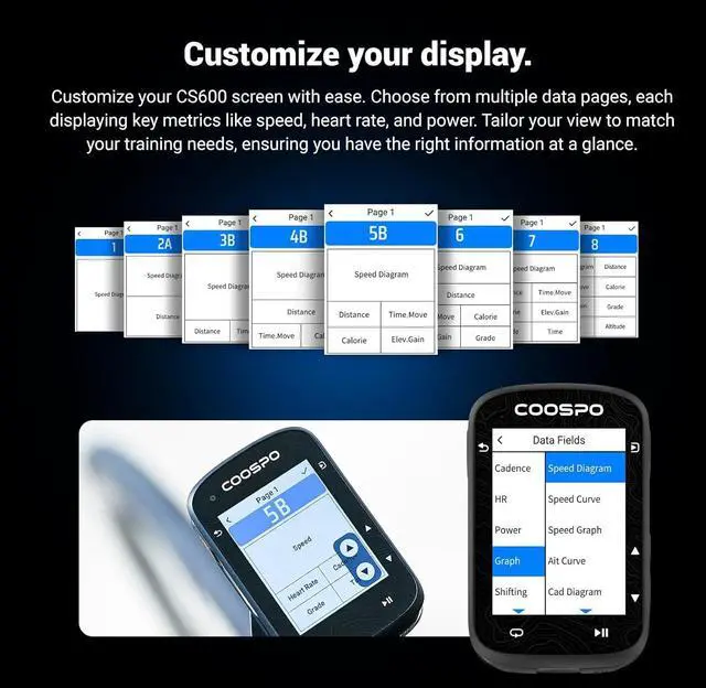 PERSONALIZED DATA DASHBOARD: Customize your display layout and prioritize the metrics that matter most to you. Create tailored views for different riding styles, allowing you to focus on your performance without distraction.