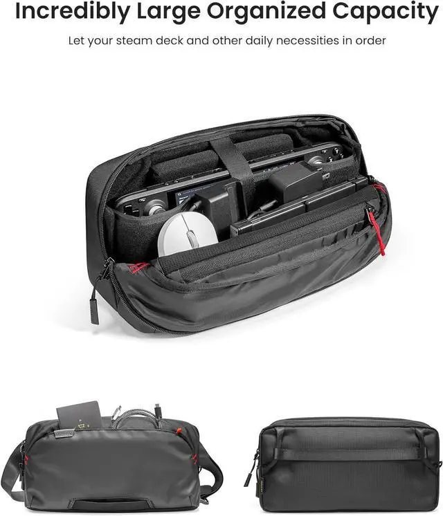 Assured All-around Protection: sling bag designed a unique removable EVA W-shaped structure inside for the Steam Deck/ ROG Xbox Ally/ ASUS ROG Ally; roomy spaces are reserved on the left and right, which can protect the steam deck screen from scratch and joysticks from being pressed. And the steam deck can be tightened with the included magic strap for extra protection