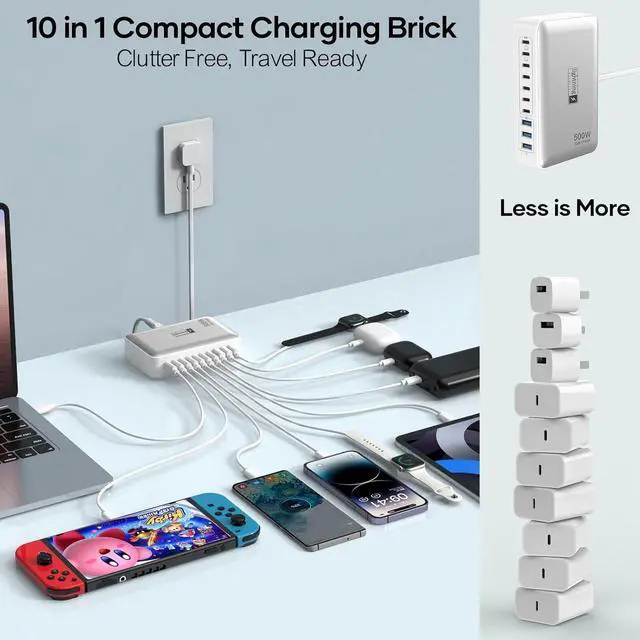 Updated GaN fast charging tech: equipped with PD/PPS, super fast charging&compatible with MacBook Pro/Air, Dell XPS, iPad Pro, iPhone 16/16 Pro Max, iPhone 15 Pro Max, iPhone 14/13 Pro/12 Pro Max, iwatch, AirPods, Surface Pro, Galaxy S23 Ultra, Switch, Steam Deck, Google Pixel, and more.