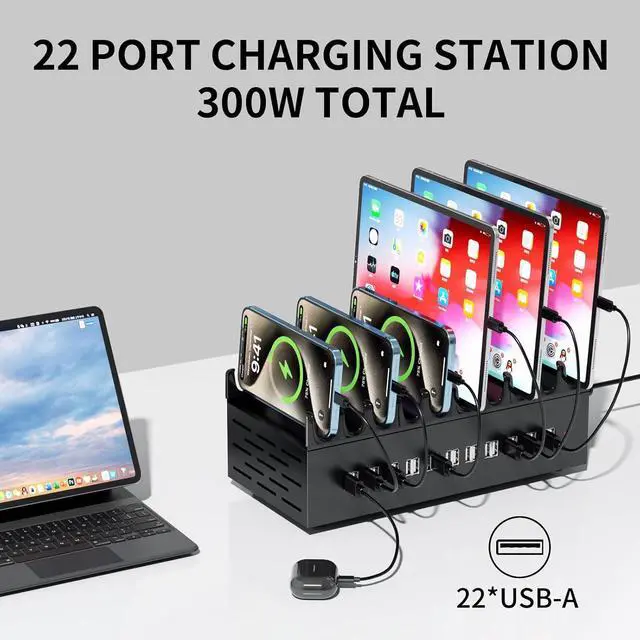 [Your Devices's Guardian Angel] Power with Zero Compromises on Safety - engineered to protect your devices like a fortress! This 22-port phone charging station integrates 6-Layer Advanced Protection Technology, It has overvoltage, overload, short-circuit, battery, and overcurrent protection. rigorously tested to meet global safety standards. Whether charging overnight, in busy households, or high-demand workspaces, your gadgets stay shielded from risks