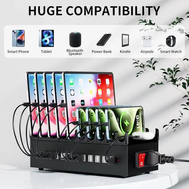 [One Station for Every Device, Every Space] Charge Anything, Anywhere. Say goodbye to compatibility headaches! This Multiport charger station is your ultimate universal power hub, designed to fuel every USB-powered device in your lifecompatible with from iPhones, Android phones, and iPads to Kindles, Bluetooth headphones, gaming controllers, smartwatches and even IoT gadgets. just plug and power up!