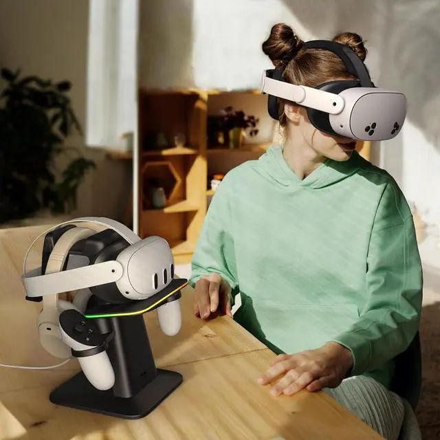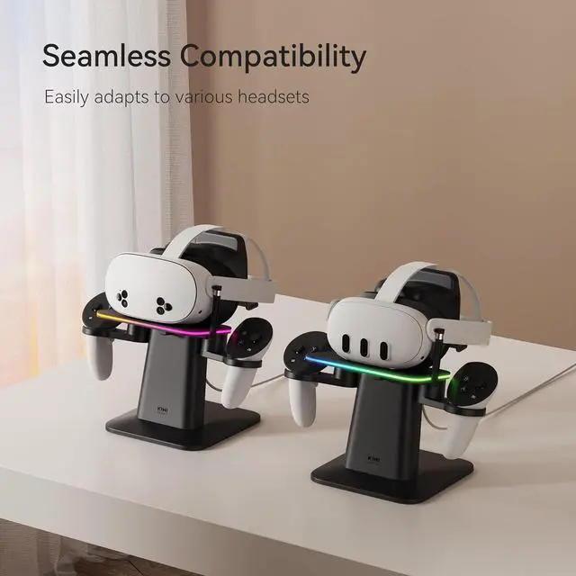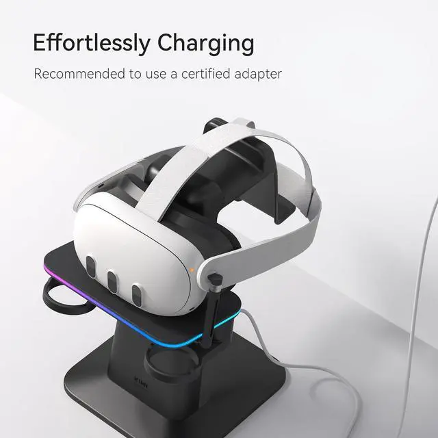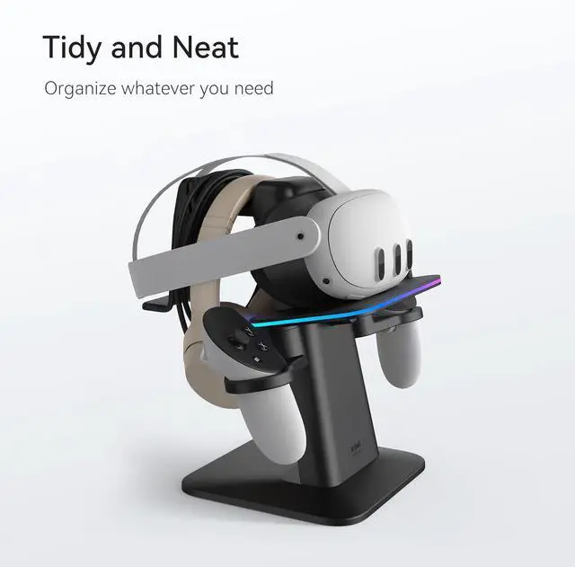 Seamless Compatibility: The flexible magnetic charging cable, along with the scratch-free surface on the RGB platform and holders, easily adapts to various headsets and controllers