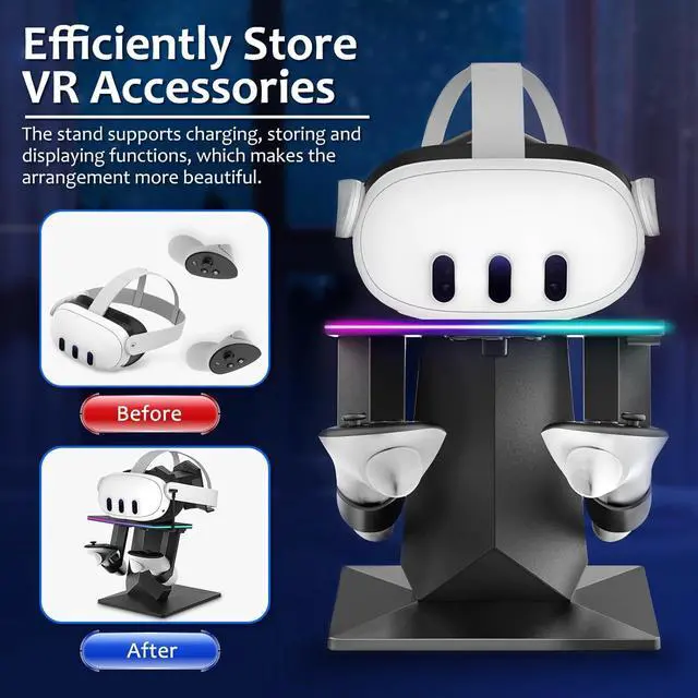 [Tidy Gaming Environment] - The charging dock helps you organize your gaming devices, keeping your gaming area tidy and orderly. By integrating charging and device storage functions, it ensures that your VR devices and peripheral accessories are neatly organized, making your gaming environment cleaner and more comfortable. Cool oculus quest accessories.