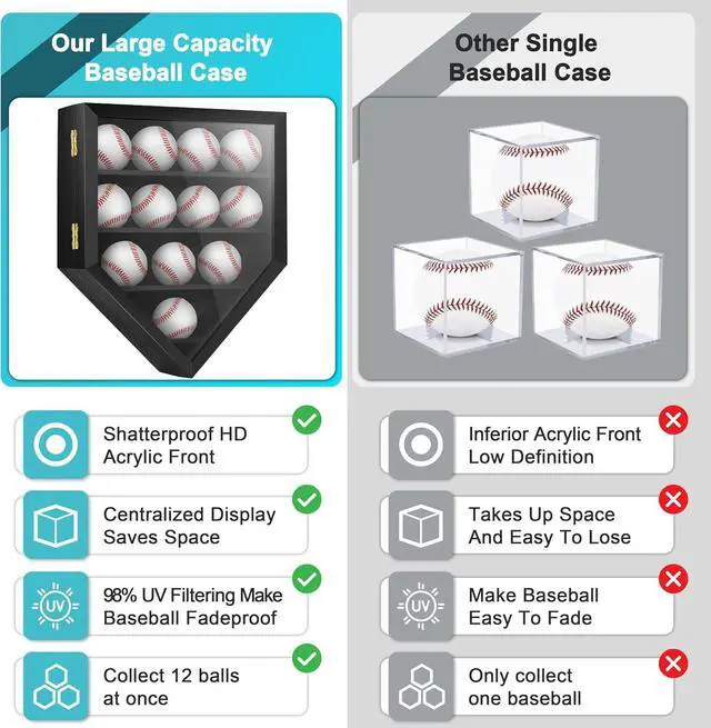 [LARGE CAPACITY] - The baseball shadow box features 5 shelves. Each shelf is 2 inches apart and each post is 2 inches apart, ensuring that each ball has its own individual display space. Removable layers of shelves increase the practicality and make your balls collection both hassle free and money saving.