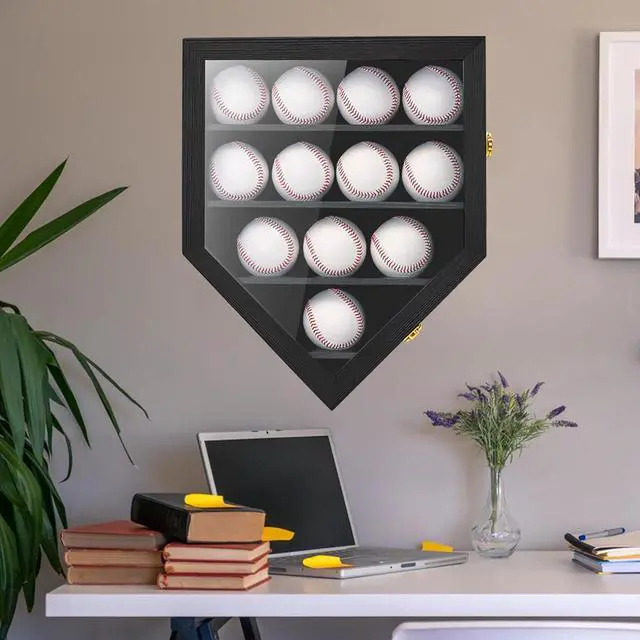 [EXQUISITE DESIGN] - The baseball holder comes with an exquisite black pentagonal cabinet design, presenting a stunning visual display. Baseball box exterior design enhance texture. A gold plated lock offers an added level of security.