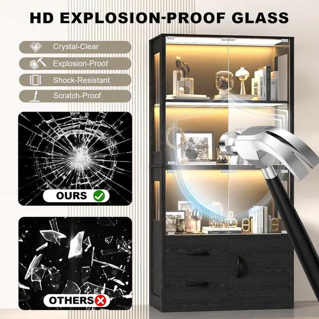 Modern Style in Black OakWith its natural black oak finish, minimalist lines, and handle-free pop-up doors, this glass display case blends beautifully into contemporary interiors. Whether styled as a china cabinet, glass door bookcase, or figure display cabinet, it enhances your space with a clean, upscale look.