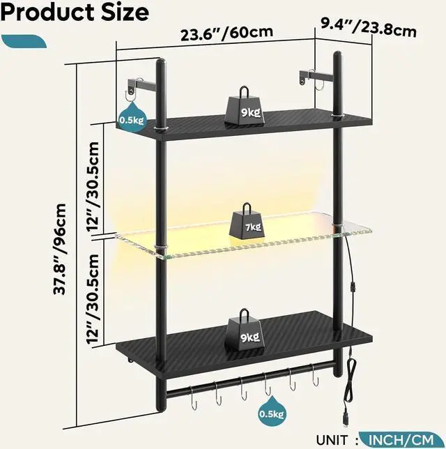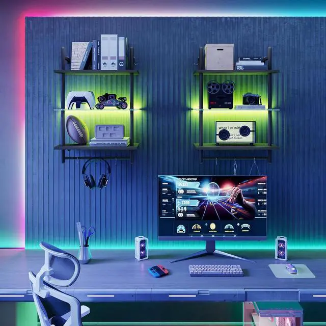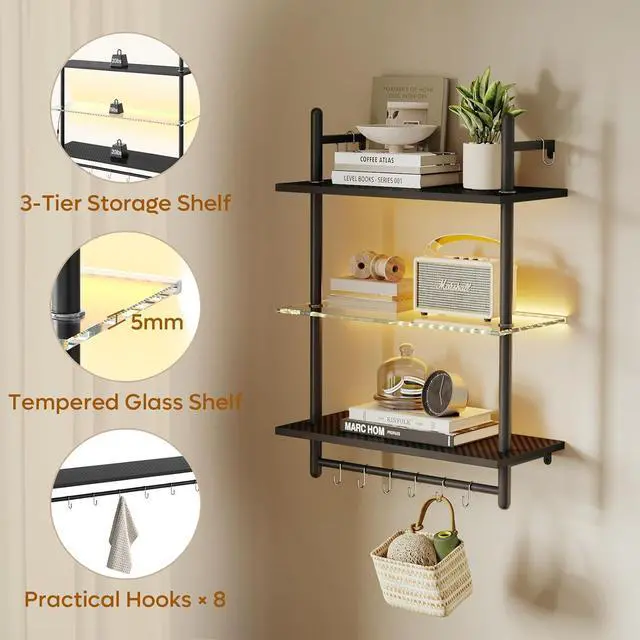 VERSATILE USEThis wall shelf can be used as an LED display rack in a gaming room or a coffee bar shelf in the living room. It can also be a good helper for storage in study room and bathroom, a versatile space-organizing solution.