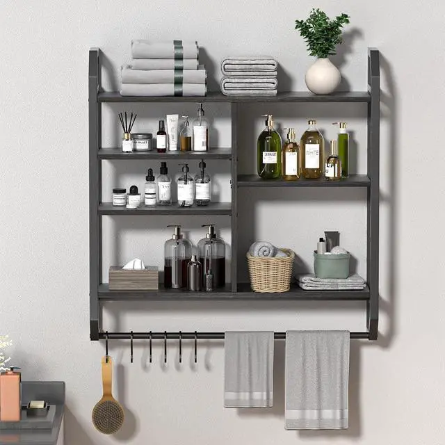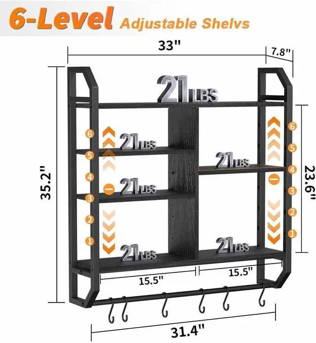 Generous Vertical Storage: At 33" x 35.2" x 31", this wall-mounted shelf makes the most of your vertical space. Its large dimensions provide ample storage while freeing up valuable floor area, offering a stylish and practical solution for organizing your essentials.