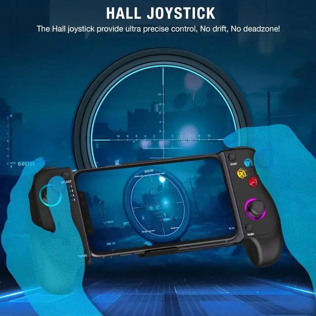 Sensitive Rocker & Comfortable Grip: The game controller for android phone adopts newest Hall effect rocker with high precision, stable performance, no drift, no wear, no dead zone, delicate control, instant response and long service life. Let you play the game more pleasantly, the grip of the android game controller with laser engraved texture, delicate feel, ergonomic design, comfortable and firm grip, not tired of playing for a long time, anti-sweat and anti-slip