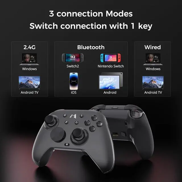 Universal Compatibility & Ergonomic Design Works seamlessly across Switch, Windows, Steam, Android, and iOS (Genshin Impact supported). Features sweat-resistant rubberized grips, a replaceable D-pad (cross/circle), and a 1000mAh battery providing up to 15 hours of gameplay. Comes with a PU travel case, USB-C charging cable, and a wireless dongle for plug-and-play precision.
