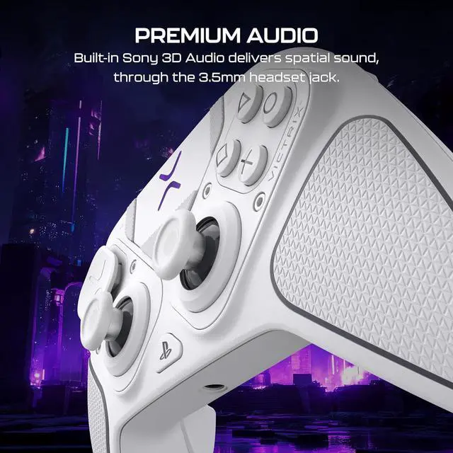 4 Mappable Quick-Action Buttons 11 Interchangeable Components Built-In 3.5 mm Audio Jack with Premium Sony 3D Audio Wired and Wireless Connectivity (Up to 20-Hour Rechargeable Battery)