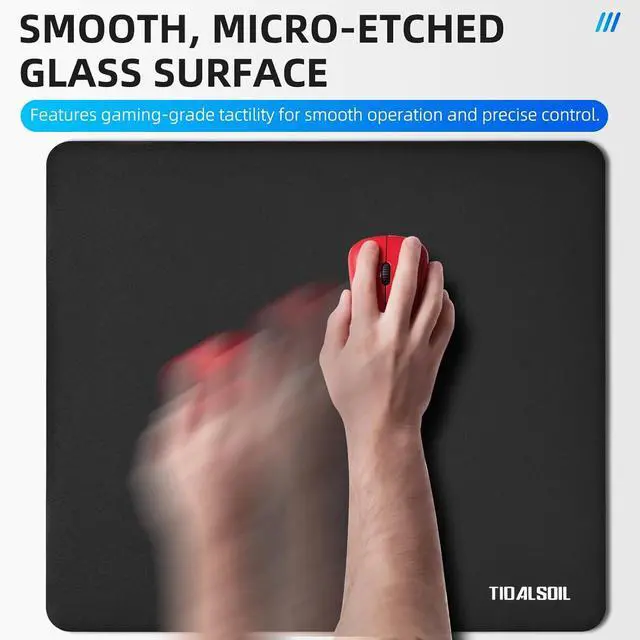 DURABLE & EASY TO CLEAN Crafted from high-strength tempered glass, resistant to heat, wear, and spills. Simply wipe with water to restore its like-new feel. Unlike cloth or resin pads, this glass mouse pad is built to last for years.